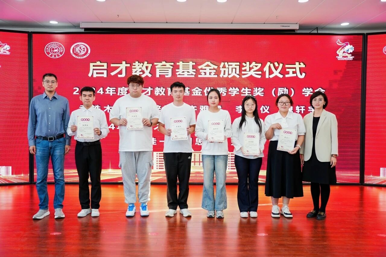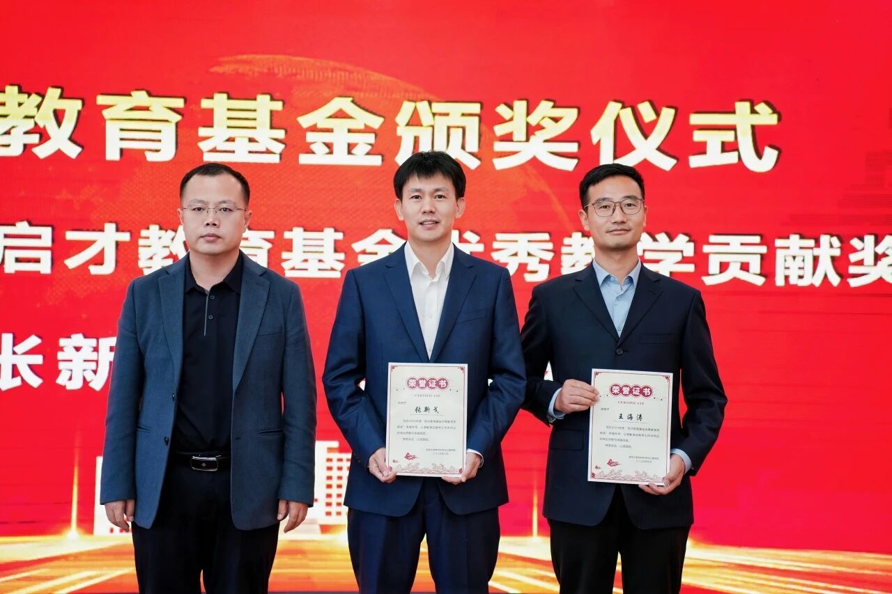 在启才教育基金颁奖仪式上,副院长赵小辉为王海涛、张新戈颁发启才优秀教学奖。2006级校友宋岩、副院长兼副书记华蕊为获奖学生代表颁发启才教育基金优秀学生奖(励)学金、启才教育基金-北京紫峰助学金。