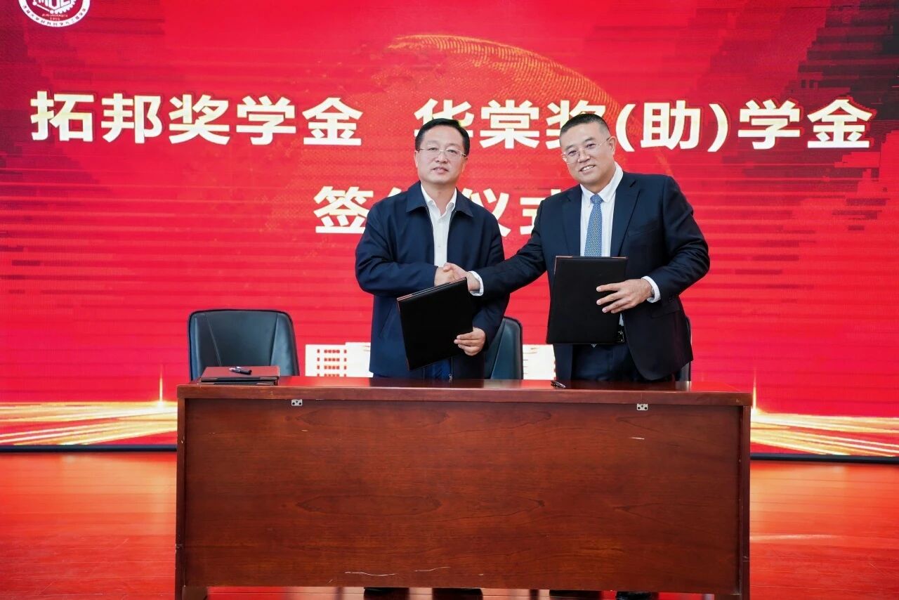 会上,吉林大学校友和基金会工作办公室主任康永刚与绍兴市铂兴科技有限公司、1997级校友王秀平签署华棠奖助学金协议。张立军与江苏拓邦华创科技有限公司董事长、2001级校友赵慧宇签署拓邦奖学金协议。