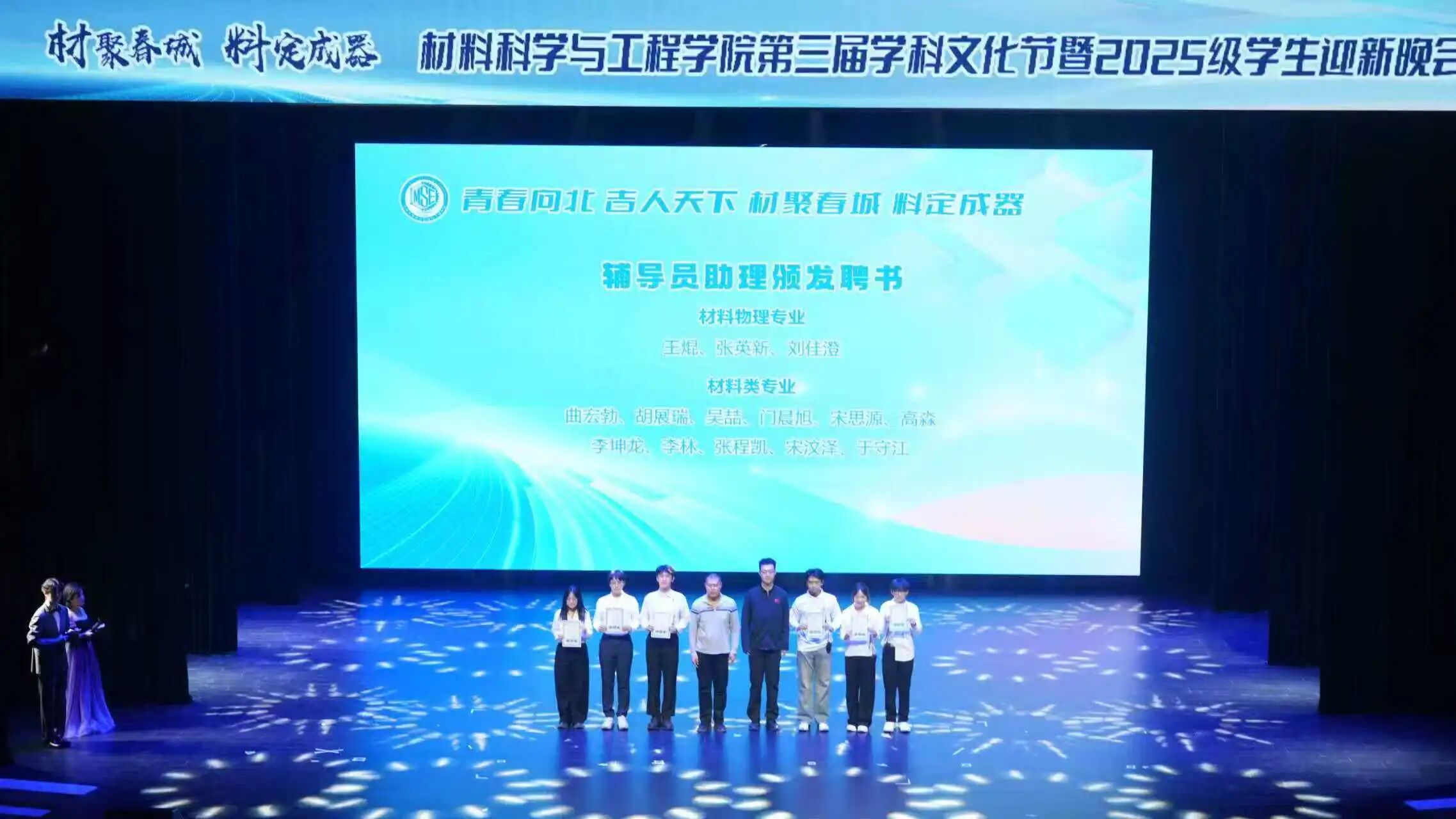 第三届学科文化节暨迎新晚会在掌声与欢笑中圆满画上句号。这场融合学科魅力与青春风采的盛会,不仅为2025级新生开启了大学时光的璀璨序幕,更展现了材料人的创新活力与深厚情怀。