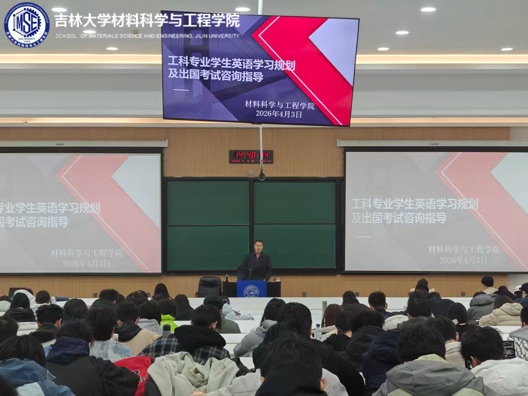 为进一步提升工科专业学生核心竞争力,帮助同学们科学规划英语学习、明晰出国深造与职业发展路径,2026年4月3日,由学生就业创业指导服务中心与材料科学与工程学院联合举办的“协同指导促就业”系列指导活动顺利开展。本次活动以“工科专业学生英语学习规划及出国考试咨询指导”为核心,面向全体工科相关专业学生展开深度指导。