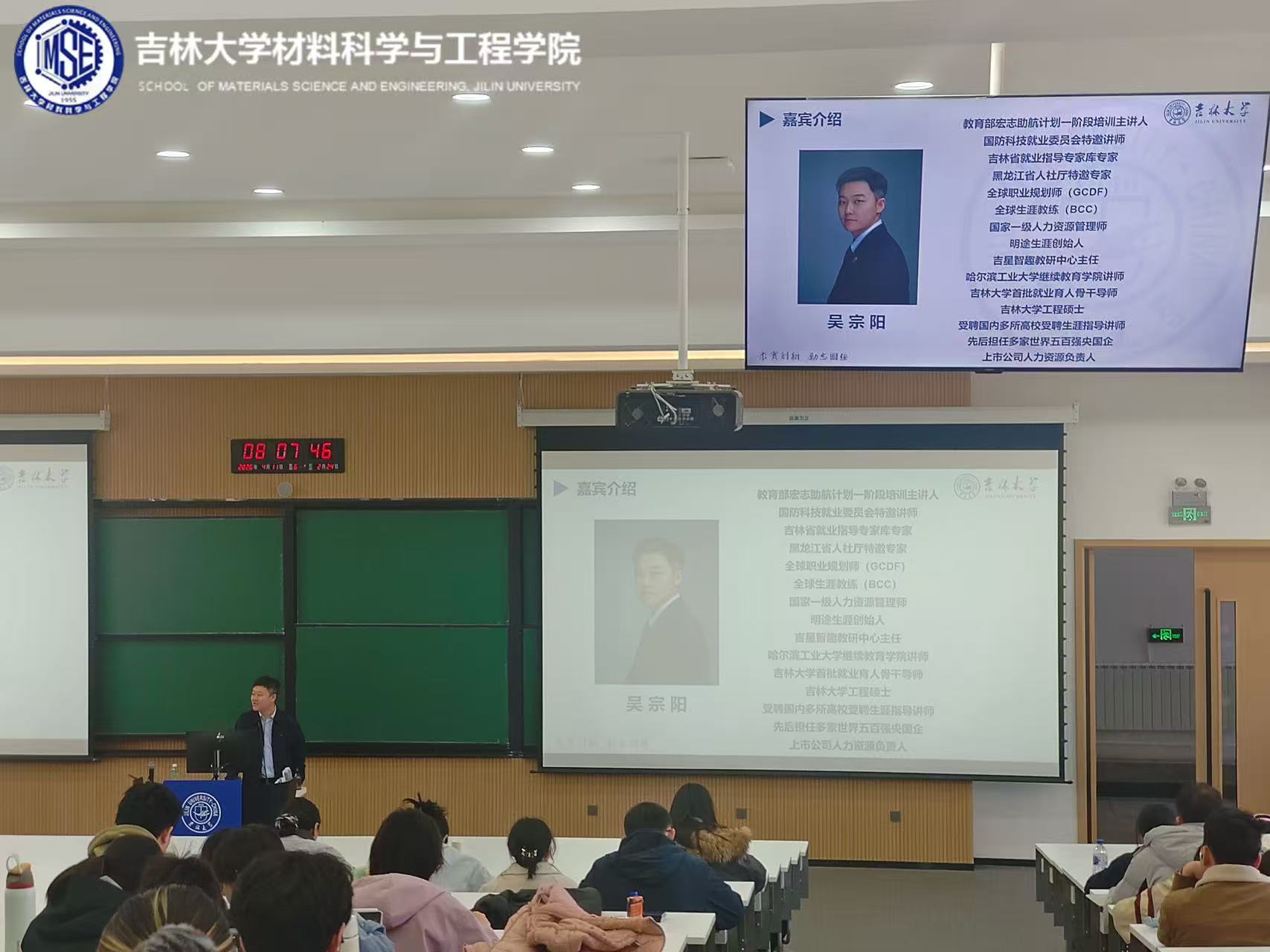 本次活动以“天生我‘材’ 名企HR面对面”为主题,邀请到教育部宏志助航计划培训主讲人、吉林省就业指导专家库专家、学而思集团人力资源负责人吴宗阳老师担任主讲嘉宾,为同学们带来全方位的职业发展赋能。