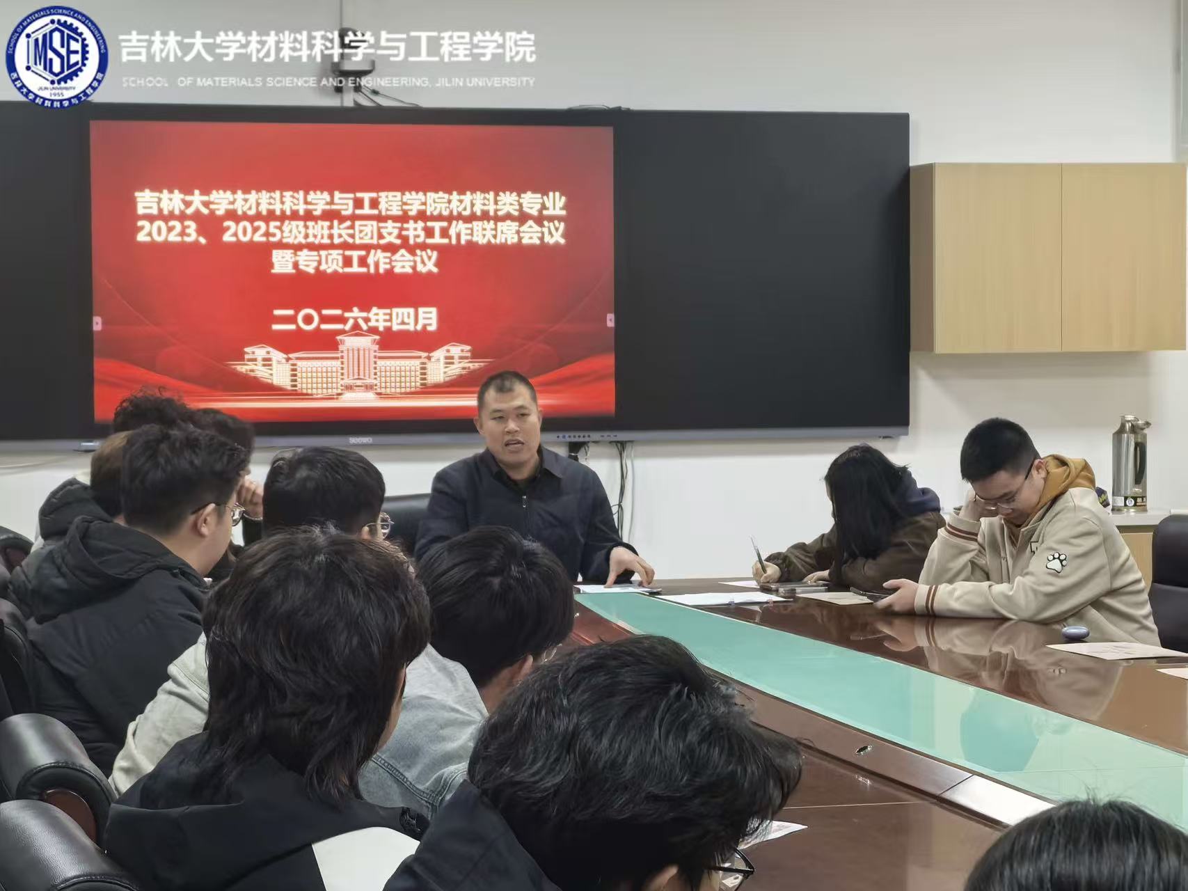 为进一步强化学生安全管理工作,落实相关工作要求,2026年4月13日,材料科学与工程学院在材料馆410会议室召开材料类专业2023、2025级班长团支书工作联席会议暨专项工作会议。学院材料类专业2023、2025级辅导员严冬老师支持本次会议。